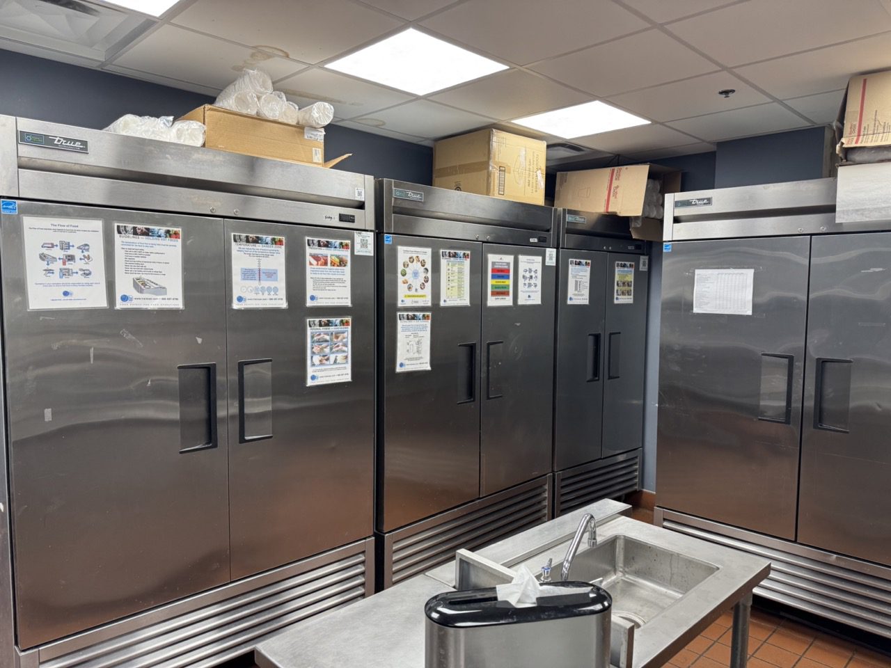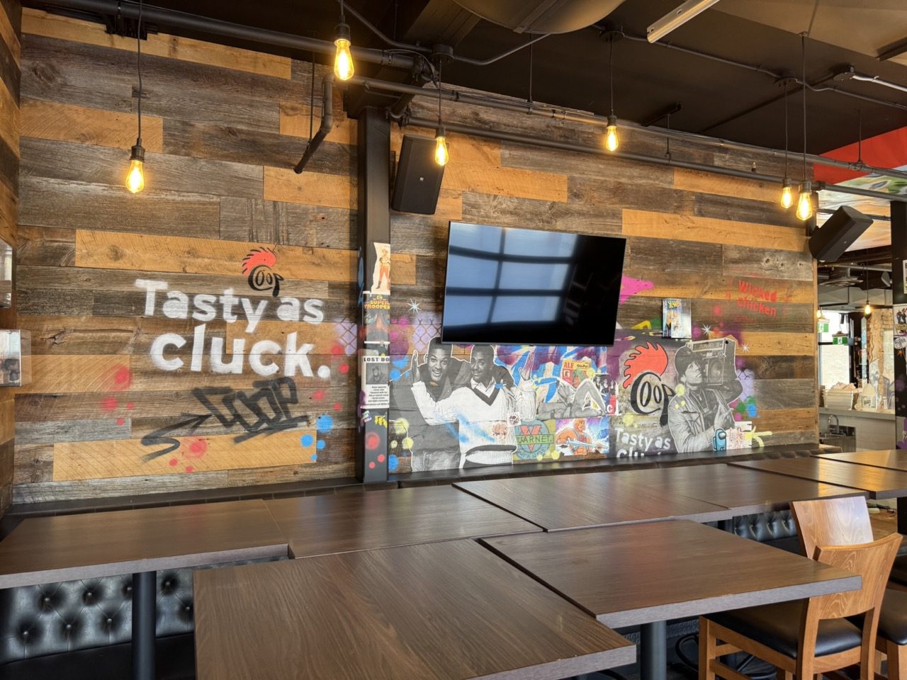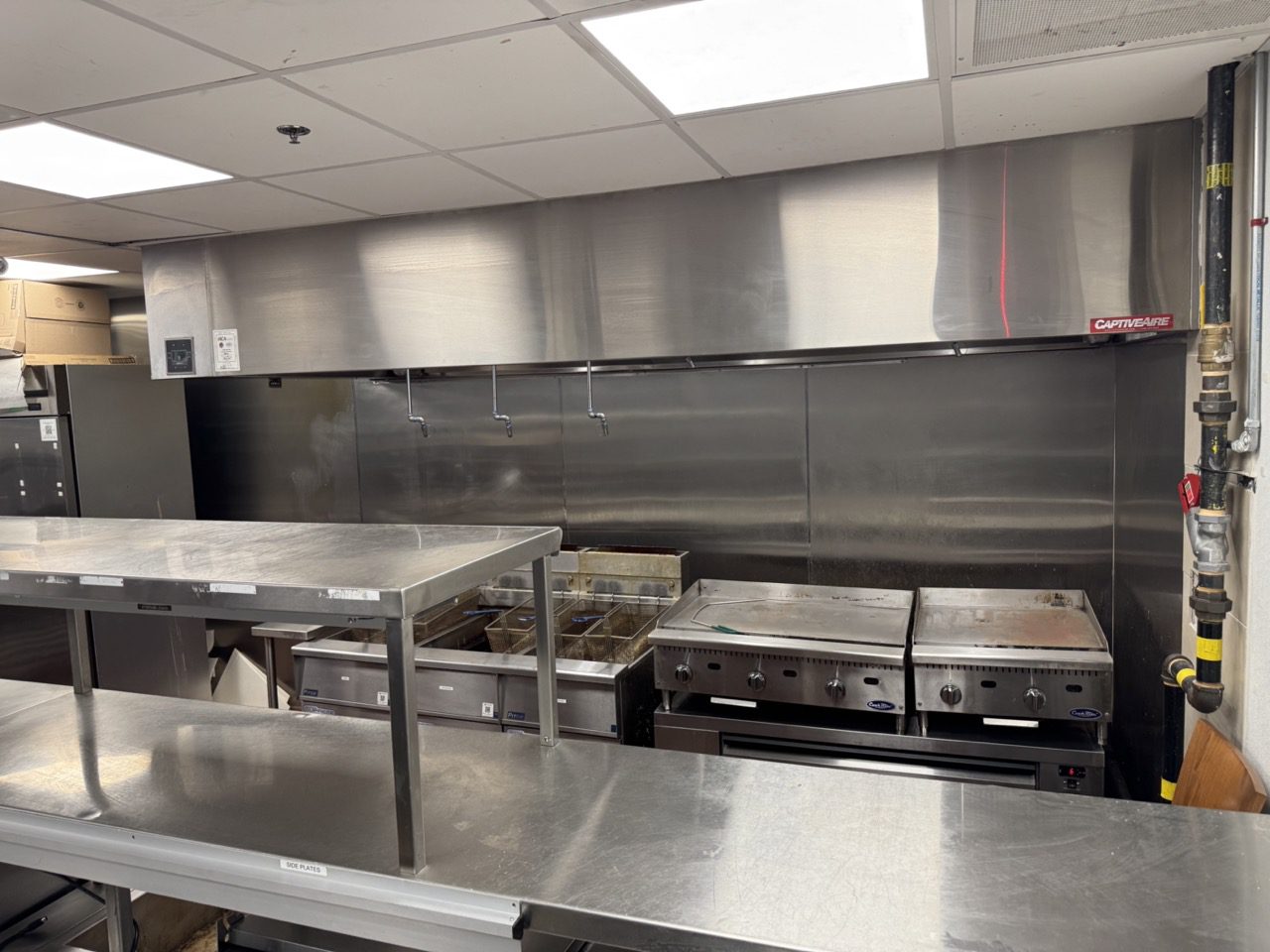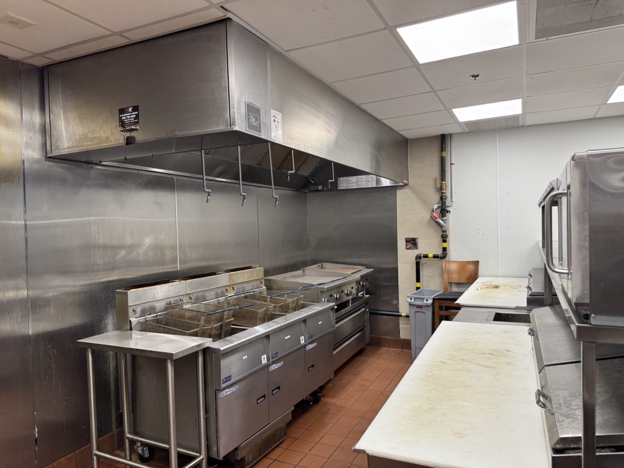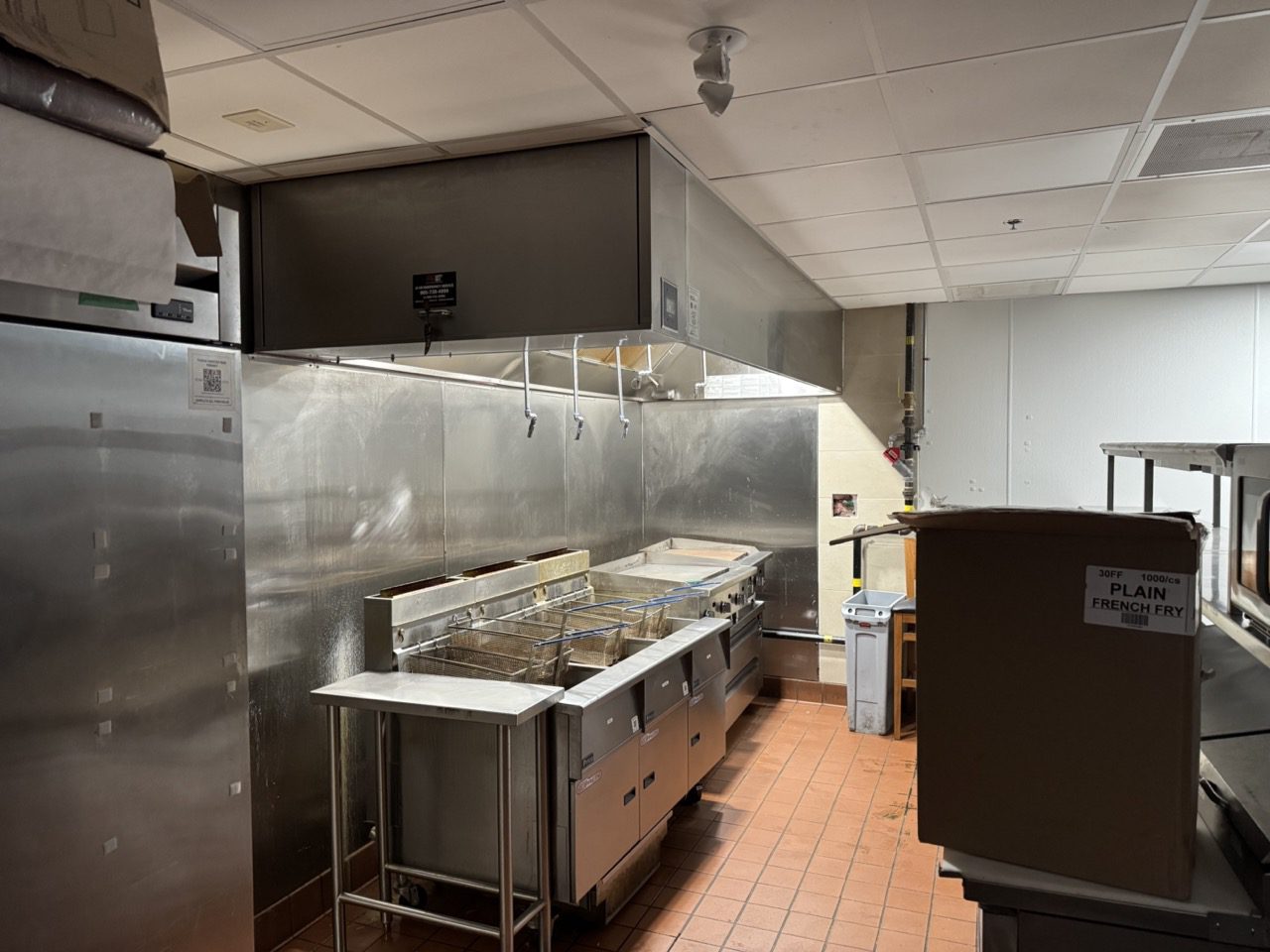 Fully built out in 2022, this modern restaurant space is completely equipped with high-quality finishes and equipment throughout, including True fridges and freezers, 55-inch TVs, a 10-tap draught tower, professional sound system, large kitchen exhaust hood, camera system, banquettes, tables, chairs, flat tops, fryers, and much more.