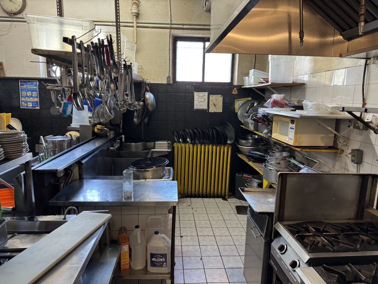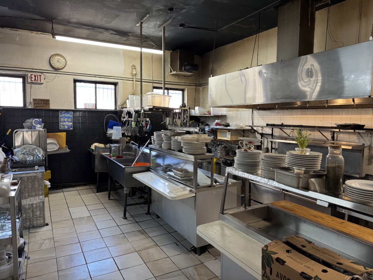 The restaurant is fully equipped with a commercial kitchen, including a walk-in fridge and all essential infrastructure for immediate operation. Additional storage is available with a full basement, supporting efficient day-to-day operations.