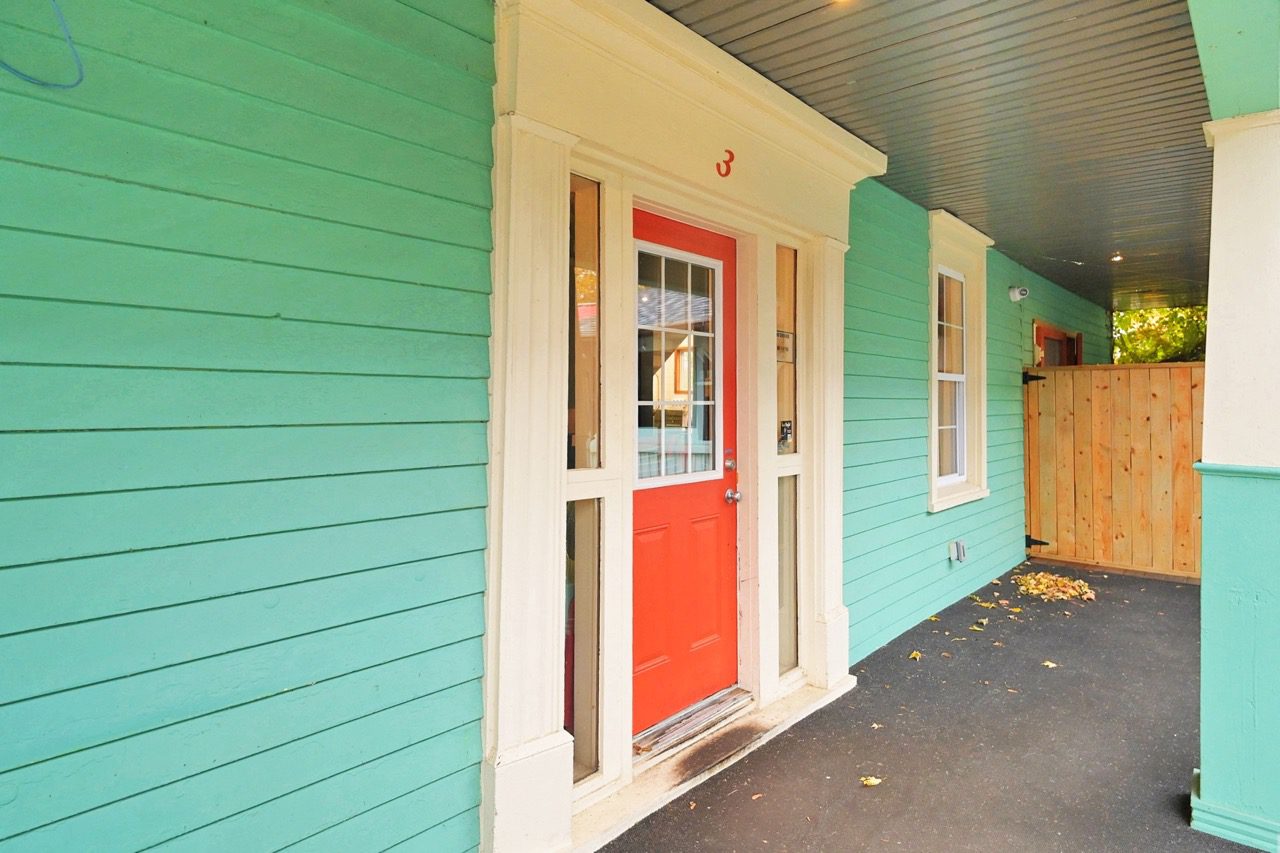 A covered porch provides private access to the two-storey loft apartment, perfect for owner-operators or investors seeking short-term rental income. The apartment includes an open-concept living and dining area, full kitchen, large 4-piece bathroom, and a second room that can function as an additional bedroom or office. The upper level features a chalet-style loft bedroom overlooking the main living space. The apartment has also operated successfully as a short-term rental, offering strong secondary income potential.