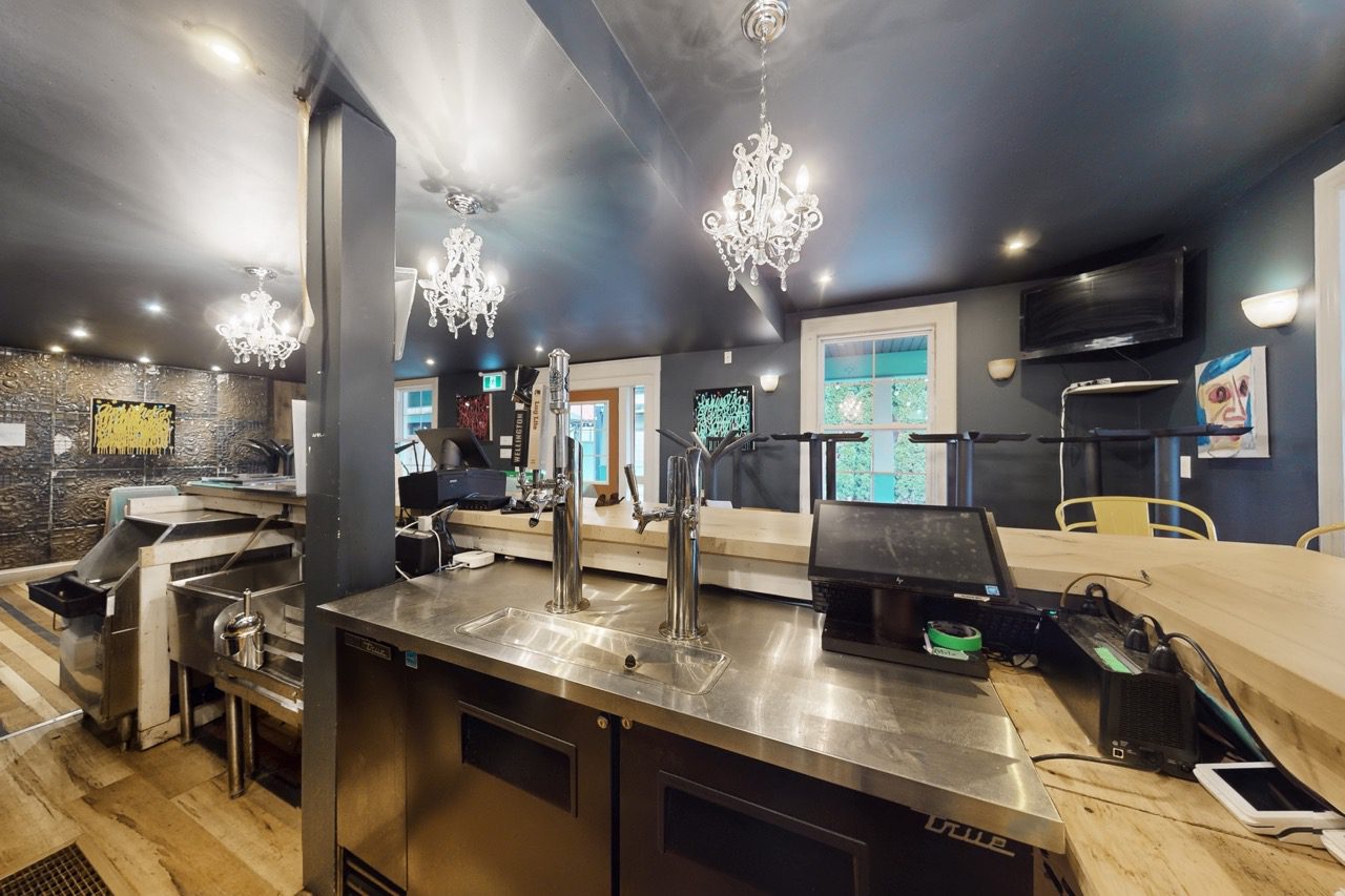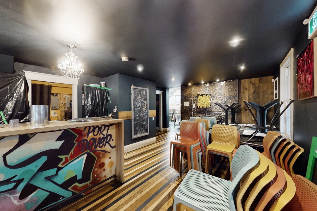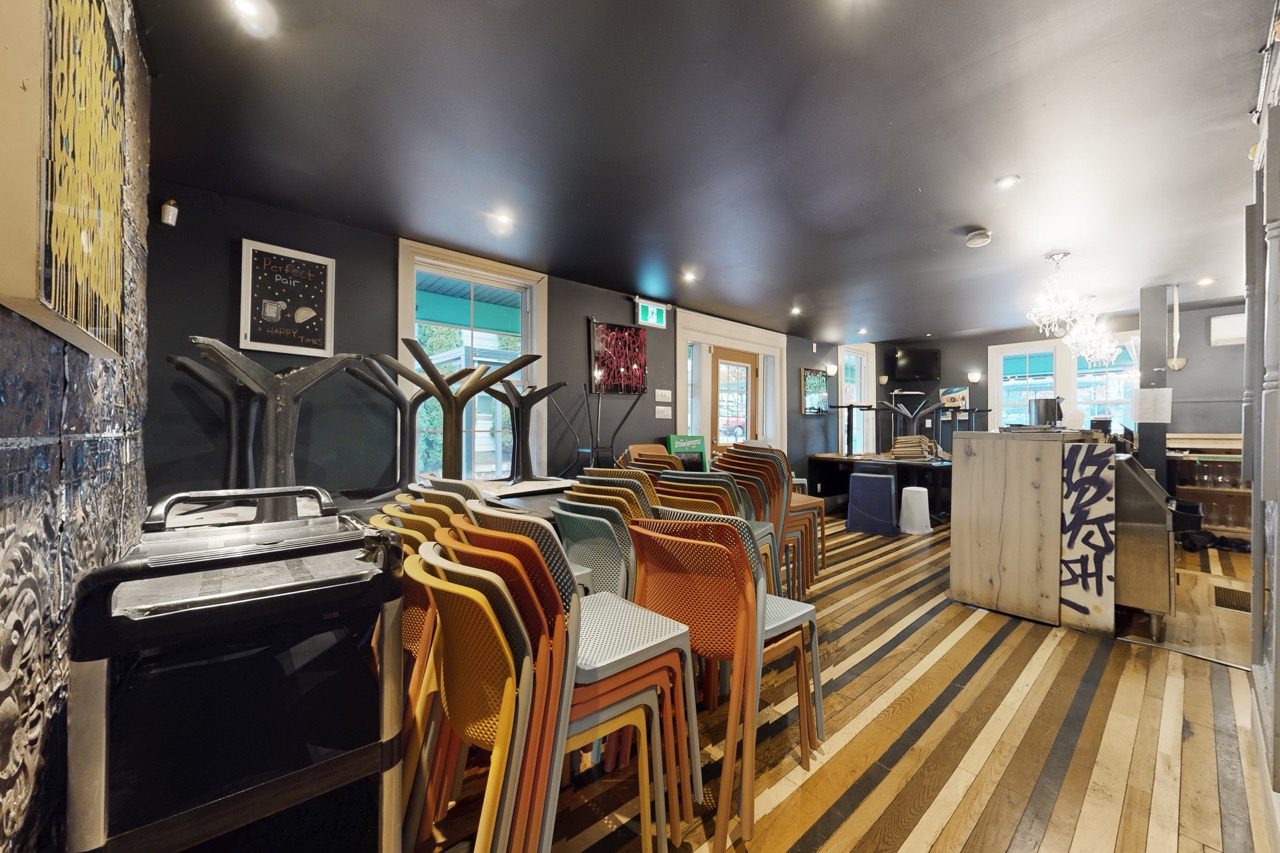 The main-floor restaurant is fully equipped and operational, making it ideal for operators seeking a seamless transition. Features include indoor seating for 30 guests, two customer washrooms, a large bar with back prep area, and an adaptable dining room layout suited to a wide range of concepts. Many chattels and furnishings are included.